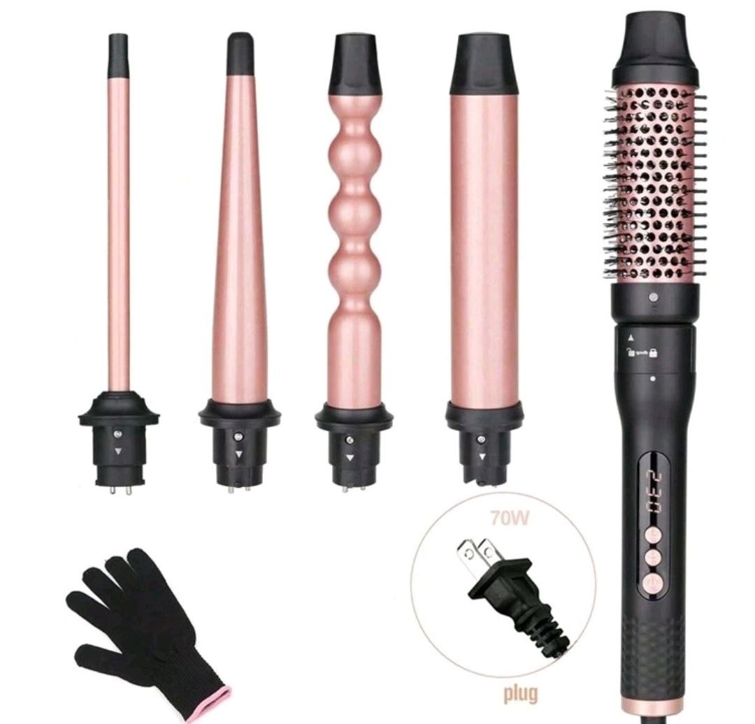 Juego de tenacillas de rizar 5 en 1, tamaño del barril: 38 mm, 32 mm, 25 mm, longitud del barril ajustable de 13-25 mm, 5 barras caloríficas intercambiables de cerámica con múltiples ajustes de temperatura.